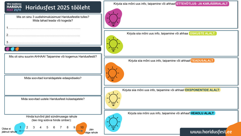 HaridusFestil on võimalik tutvuda erinevate võimalustega hariduse-, karjääri- ja mitteformaalse enesetäienduse valdkonnas. EWERSi tehnomaja aatriumist leiad mitmekülgse valiku nii teoreetilistest kui ka praktilistest teadmistest, mida enda elu vormimisel kasutada!